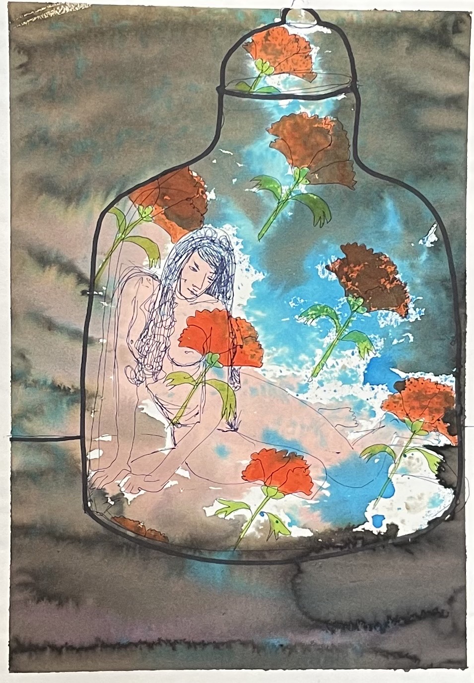 – from the series “humans in ornamented jars” – watercolour on paper